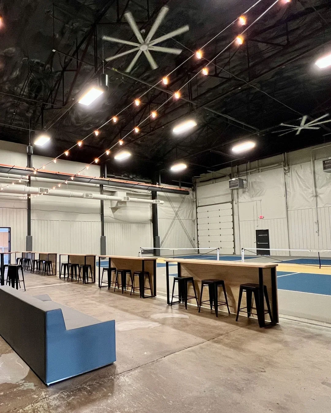 Our Front Courts + Lounge is a semi-private Pickleball court area. Great for slightly smaller groups compared to our Back Courts and for events that thrive off the energy of our taproom.